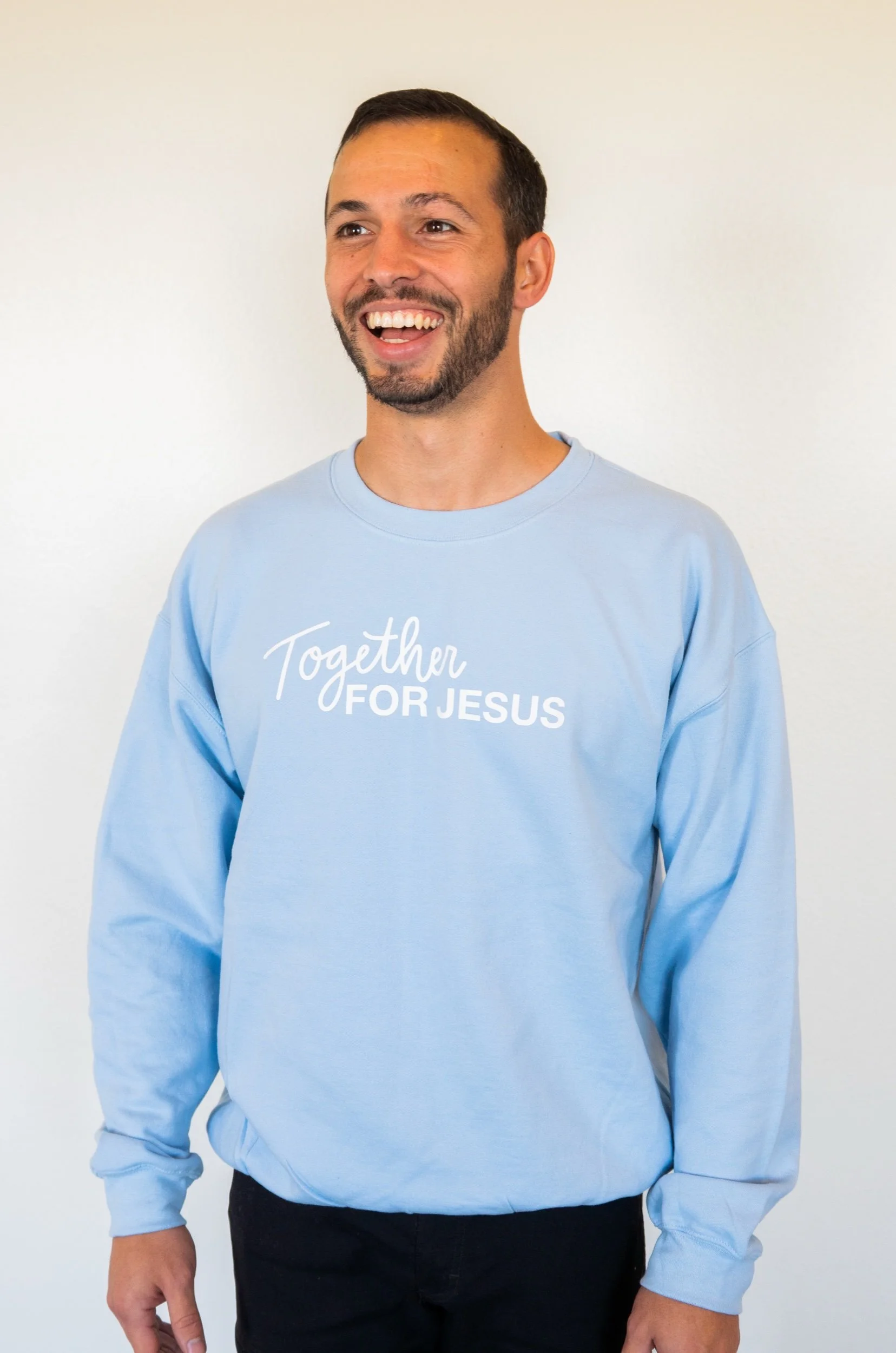 Store › Together for Jesus blue crewneck Image 1 of 2 Image 2 of 2 Together for Jesus blue crewneck $45.00 Size: Small Medium Large Xl Xxl Quantity: Add To Cart Added!